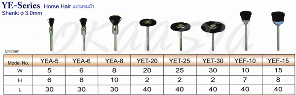 รหัสสินค้า : ชื่อสินค้า : แปรงขนม้า YE-Series การรับประกัน : 7 วัน การจัดส่งสินค้า : ส่งถีงภายใน 2 วัน Speed 80,000 Rpm. Collet Size 3 mm. Overall Lenght 143 mm. Air Pressure 90 Psi. Net Weight 0.1 kg.