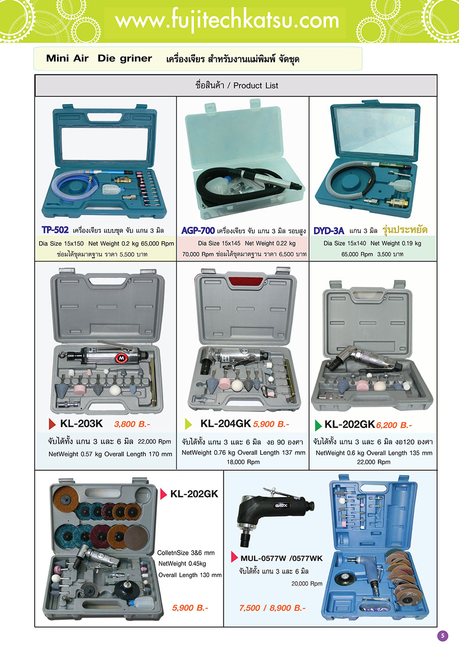 หมวดหมู่สินค้า เครื่องมือลม เครื่องเจียรแกนจับแกน 3 มิล ตะไบลม เลื่อยลม เครื่อขัดกระดาษทรายลม แบบ กลม 2-6 นิ้ว เครื่องเจียรลม ขนาด 2 นิ้ว -7 นิ้ว สว่านลม ไขควงลม บล็อคลม รีเวทลม กรรไกรลม เครื่องแม็กซ์ลม เครื่องยิงตะปูลม กาพ่นสี เครื่องพ่นสี , เครื่องกวนสี เครื่องเจียรลมจับแกน 6 มิล เครื่องเจียรลม แกน 3 มิลแบบชุด เครื่องเจียรลมจับแกน 6 มิลแบบเป็นชุด เครื่องเจียรลมแกนจับ 6 มิล แบบองศา เครื่องขัดกระดาษทราบแบบเหลี่ยม เครื่องขัดสายพาน เครื่องเจียรลมขนาดเล็กแบบองศา สกัดลม อุปกรณ์เครื่องมือลม ปืนลม สายลมม้วนกลับ ข้อต่อลม ลูกบล็อคลม ดอกไขควงลม น้ำมันเครื่องมือลม สายลม SPRING BALANCER ดอกสกัดลม AIR FILTER ถังดูดฝุ่น SPRAY GUN เครื่องมือเพชรสำหรับงานอุตสาหกรรม ตะไบเพชร แบบใช้มือจับ หัวเจียรเพชร จับแกน 3 มิล และแกน 6 มิล ผงเพชร/กระดาษทรายเพชร/แปลงขัดเพชร เพชรแต่งหน้าหิน/ไขควงเพขร หินเจียรเพชรเรซิ่น และ เพชรชุบ มีดกลึงเพชร ตะไบเพชร / แบบใข้เครื่องขัด หินเพชรชุบ MOUNTED POINT อุปกรณ์สำหรับ งานขัด,งานเจียร ดอกต๊าป ดอกเจาะนำศูนย์ เคาน์เตอร์บอร์ เคาน์เตอร์ซิงค์ ใบเลื่อย คัตเตอร์กัดร่อง หัวเจียรคาร์ไบด์ แกน 3มิล และ 6 มิล เครื่องมือไฟฟ้า , เครื่องขัดอุนตร้าโซนิค เครื่องเจียรเครื่องขัด ไฟฟ้าขนาดเล็ก เครื่องขัด อุนตร้าโซนิค ไขควงไฟฟ้า สว่านไฟ้าฟ้า เครื่องขัดไฟฟ้า เครื่องเจียรไฟฟ้า 4-7 นิ้ว เลื่อยไฟฟ้า เครื่องมือกัด,ตัด,เจาะ,กลึง,ปาด เอ็นมิล หัวเจียร์คาร์ไบด์ , ดอกเจียรคาร์ไบด์ ดอกสว่าน ดอกเอ็นมิล ดอกเจาะ , เดอความรู , ขยายปากรู ดอกต๊าป ใบเลื่อย รีมเมอร์ เครื่องมือช่าง กระดาษทราย ลูกขัดสักหลาด ลูกยางขัดเงา ชนิดแกน 3 มิล และ 6 มิล สก๊อตไบร์ทขัดเงา ขนแกะขัดเงา , ฟองน้ำขัดเงา แป้นเพด แปลงขัดชนิดต่าง ๆ แบบมีแกน 3 และ 6 มิล แปลงลวดอุตสาหกรรม หินขัดน้ำมัน-หินขัดแม่พิมพ์-หินเจียรราบ ตะไบช่าง ฟองน้ำขัดเงา Catalog แคตตาล็อค