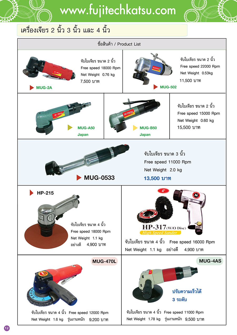 หมวดหมู่สินค้า เครื่องมือลม เครื่องเจียรแกนจับแกน 3 มิล ตะไบลม เลื่อยลม เครื่อขัดกระดาษทรายลม แบบ กลม 2-6 นิ้ว เครื่องเจียรลม ขนาด 2 นิ้ว -7 นิ้ว สว่านลม ไขควงลม บล็อคลม รีเวทลม กรรไกรลม เครื่องแม็กซ์ลม เครื่องยิงตะปูลม กาพ่นสี เครื่องพ่นสี , เครื่องกวนสี เครื่องเจียรลมจับแกน 6 มิล เครื่องเจียรลม แกน 3 มิลแบบชุด เครื่องเจียรลมจับแกน 6 มิลแบบเป็นชุด เครื่องเจียรลมแกนจับ 6 มิล แบบองศา เครื่องขัดกระดาษทราบแบบเหลี่ยม เครื่องขัดสายพาน เครื่องเจียรลมขนาดเล็กแบบองศา สกัดลม อุปกรณ์เครื่องมือลม ปืนลม สายลมม้วนกลับ ข้อต่อลม ลูกบล็อคลม ดอกไขควงลม น้ำมันเครื่องมือลม สายลม SPRING BALANCER ดอกสกัดลม AIR FILTER ถังดูดฝุ่น SPRAY GUN เครื่องมือเพชรสำหรับงานอุตสาหกรรม ตะไบเพชร แบบใช้มือจับ หัวเจียรเพชร จับแกน 3 มิล และแกน 6 มิล ผงเพชร/กระดาษทรายเพชร/แปลงขัดเพชร เพชรแต่งหน้าหิน/ไขควงเพขร หินเจียรเพชรเรซิ่น และ เพชรชุบ มีดกลึงเพชร ตะไบเพชร / แบบใข้เครื่องขัด หินเพชรชุบ MOUNTED POINT อุปกรณ์สำหรับ งานขัด,งานเจียร ดอกต๊าป ดอกเจาะนำศูนย์ เคาน์เตอร์บอร์ เคาน์เตอร์ซิงค์ ใบเลื่อย คัตเตอร์กัดร่อง หัวเจียรคาร์ไบด์ แกน 3มิล และ 6 มิล เครื่องมือไฟฟ้า , เครื่องขัดอุนตร้าโซนิค เครื่องเจียรเครื่องขัด ไฟฟ้าขนาดเล็ก เครื่องขัด อุนตร้าโซนิค ไขควงไฟฟ้า สว่านไฟ้าฟ้า เครื่องขัดไฟฟ้า เครื่องเจียรไฟฟ้า 4-7 นิ้ว เลื่อยไฟฟ้า เครื่องมือกัด,ตัด,เจาะ,กลึง,ปาด เอ็นมิล หัวเจียร์คาร์ไบด์ , ดอกเจียรคาร์ไบด์ ดอกสว่าน ดอกเอ็นมิล ดอกเจาะ , เดอความรู , ขยายปากรู ดอกต๊าป ใบเลื่อย รีมเมอร์ เครื่องมือช่าง กระดาษทราย ลูกขัดสักหลาด ลูกยางขัดเงา ชนิดแกน 3 มิล และ 6 มิล สก๊อตไบร์ทขัดเงา ขนแกะขัดเงา , ฟองน้ำขัดเงา แป้นเพด แปลงขัดชนิดต่าง ๆ แบบมีแกน 3 และ 6 มิล แปลงลวดอุตสาหกรรม หินขัดน้ำมัน-หินขัดแม่พิมพ์-หินเจียรราบ ตะไบช่าง ฟองน้ำขัดเงา Catalog แคตตาล็อค หน้า 12 รหัสสินค้า : หน้า 12 ชื่อสินค้า : หน้า 12 การรับประกัน : การจัดส่งสินค้า : รายละเอียด : สินค้าแนะนำ หน้า 69 หน้า 8 หน้า 2 หน้า 61 หน้า 6 หน้า 75 หน้า 89 หน้า 60