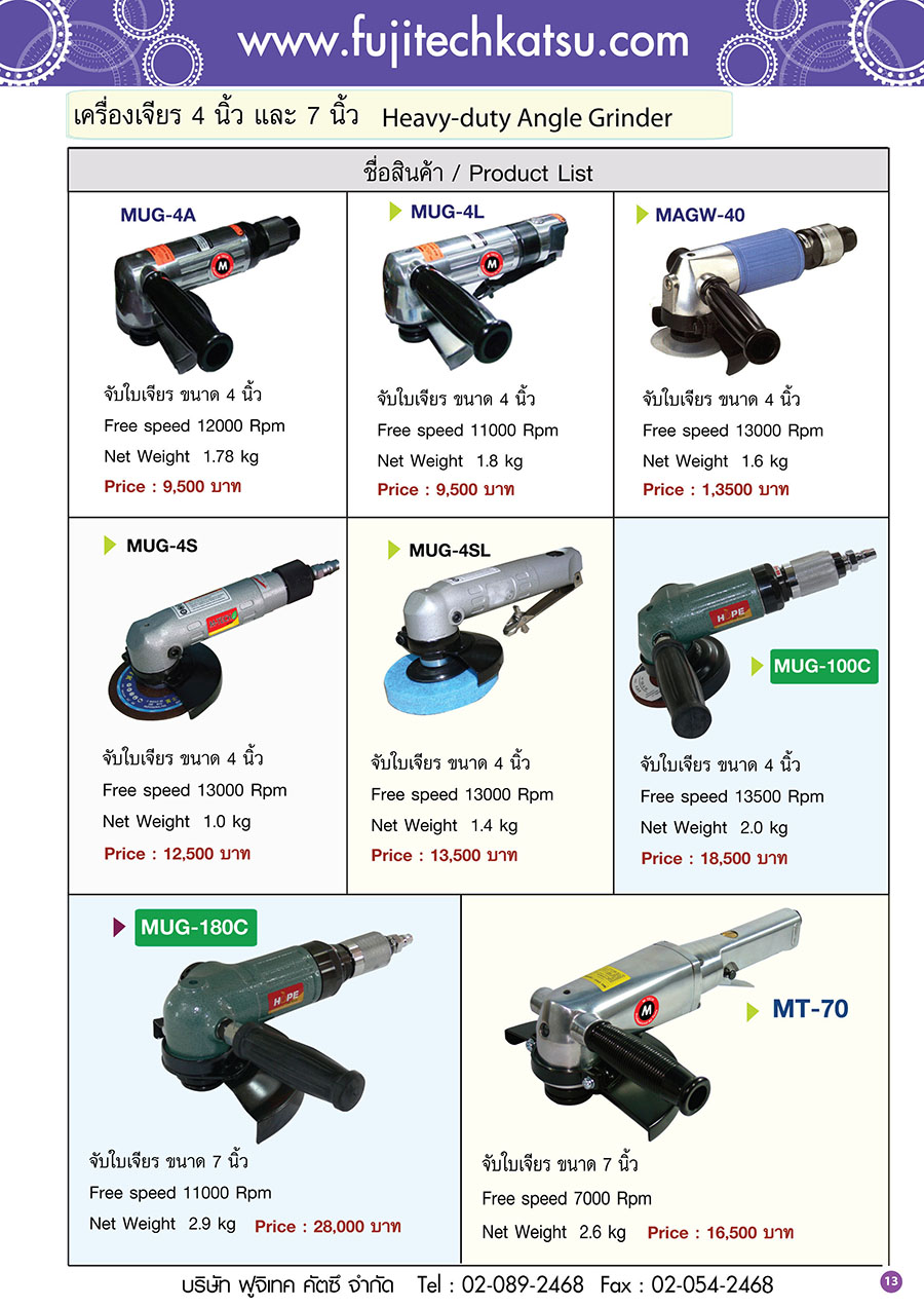 หมวดหมู่สินค้า เครื่องมือลม เครื่องเจียรแกนจับแกน 3 มิล ตะไบลม เลื่อยลม เครื่อขัดกระดาษทรายลม แบบ กลม 2-6 นิ้ว เครื่องเจียรลม ขนาด 2 นิ้ว -7 นิ้ว สว่านลม ไขควงลม บล็อคลม รีเวทลม กรรไกรลม เครื่องแม็กซ์ลม เครื่องยิงตะปูลม กาพ่นสี เครื่องพ่นสี , เครื่องกวนสี เครื่องเจียรลมจับแกน 6 มิล เครื่องเจียรลม แกน 3 มิลแบบชุด เครื่องเจียรลมจับแกน 6 มิลแบบเป็นชุด เครื่องเจียรลมแกนจับ 6 มิล แบบองศา เครื่องขัดกระดาษทราบแบบเหลี่ยม เครื่องขัดสายพาน เครื่องเจียรลมขนาดเล็กแบบองศา สกัดลม อุปกรณ์เครื่องมือลม ปืนลม สายลมม้วนกลับ ข้อต่อลม ลูกบล็อคลม ดอกไขควงลม น้ำมันเครื่องมือลม สายลม SPRING BALANCER ดอกสกัดลม AIR FILTER ถังดูดฝุ่น SPRAY GUN เครื่องมือเพชรสำหรับงานอุตสาหกรรม ตะไบเพชร แบบใช้มือจับ หัวเจียรเพชร จับแกน 3 มิล และแกน 6 มิล ผงเพชร/กระดาษทรายเพชร/แปลงขัดเพชร เพชรแต่งหน้าหิน/ไขควงเพขร หินเจียรเพชรเรซิ่น และ เพชรชุบ มีดกลึงเพชร ตะไบเพชร / แบบใข้เครื่องขัด หินเพชรชุบ MOUNTED POINT อุปกรณ์สำหรับ งานขัด,งานเจียร ดอกต๊าป ดอกเจาะนำศูนย์ เคาน์เตอร์บอร์ เคาน์เตอร์ซิงค์ ใบเลื่อย คัตเตอร์กัดร่อง หัวเจียรคาร์ไบด์ แกน 3มิล และ 6 มิล เครื่องมือไฟฟ้า , เครื่องขัดอุนตร้าโซนิค เครื่องเจียรเครื่องขัด ไฟฟ้าขนาดเล็ก เครื่องขัด อุนตร้าโซนิค ไขควงไฟฟ้า สว่านไฟ้าฟ้า เครื่องขัดไฟฟ้า เครื่องเจียรไฟฟ้า 4-7 นิ้ว เลื่อยไฟฟ้า เครื่องมือกัด,ตัด,เจาะ,กลึง,ปาด เอ็นมิล หัวเจียร์คาร์ไบด์ , ดอกเจียรคาร์ไบด์ ดอกสว่าน ดอกเอ็นมิล ดอกเจาะ , เดอความรู , ขยายปากรู ดอกต๊าป ใบเลื่อย รีมเมอร์ เครื่องมือช่าง กระดาษทราย ลูกขัดสักหลาด ลูกยางขัดเงา ชนิดแกน 3 มิล และ 6 มิล สก๊อตไบร์ทขัดเงา ขนแกะขัดเงา , ฟองน้ำขัดเงา แป้นเพด แปลงขัดชนิดต่าง ๆ แบบมีแกน 3 และ 6 มิล แปลงลวดอุตสาหกรรม หินขัดน้ำมัน-หินขัดแม่พิมพ์-หินเจียรราบ ตะไบช่าง ฟองน้ำขัดเงา Catalog แคตตาล็อค หน้า 13 รหัสสินค้า : หน้า 13 ชื่อสินค้า : หน้า 13 การรับประกัน : การจัดส่งสินค้า : รายละเอียด : สินค้าแนะนำ หน้า 69 หน้า 19 หน้า 73 หน้า 89 หน้า 74 หน้า 95 หน้า 8 หน้า 16