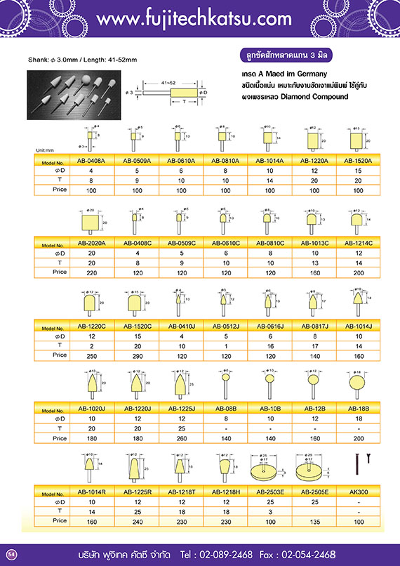 หมวดหมู่สินค้า เครื่องมือลม เครื่องเจียรแกนจับแกน 3 มิล ตะไบลม เลื่อยลม เครื่อขัดกระดาษทรายลม แบบ กลม 2-6 นิ้ว เครื่องเจียรลม ขนาด 2 นิ้ว -7 นิ้ว สว่านลม ไขควงลม บล็อคลม รีเวทลม กรรไกรลม เครื่องแม็กซ์ลม เครื่องยิงตะปูลม กาพ่นสี เครื่องพ่นสี , เครื่องกวนสี เครื่องเจียรลมจับแกน 6 มิล เครื่องเจียรลม แกน 3 มิลแบบชุด เครื่องเจียรลมจับแกน 6 มิลแบบเป็นชุด เครื่องเจียรลมแกนจับ 6 มิล แบบองศา เครื่องขัดกระดาษทราบแบบเหลี่ยม เครื่องขัดสายพาน เครื่องเจียรลมขนาดเล็กแบบองศา สกัดลม อุปกรณ์เครื่องมือลม ปืนลม สายลมม้วนกลับ ข้อต่อลม ลูกบล็อคลม ดอกไขควงลม น้ำมันเครื่องมือลม สายลม SPRING BALANCER ดอกสกัดลม AIR FILTER ถังดูดฝุ่น SPRAY GUN เครื่องมือเพชรสำหรับงานอุตสาหกรรม ตะไบเพชร แบบใช้มือจับ หัวเจียรเพชร จับแกน 3 มิล และแกน 6 มิล ผงเพชร/กระดาษทรายเพชร/แปลงขัดเพชร เพชรแต่งหน้าหิน/ไขควงเพขร หินเจียรเพชรเรซิ่น และ เพชรชุบ มีดกลึงเพชร ตะไบเพชร / แบบใข้เครื่องขัด หินเพชรชุบ MOUNTED POINT อุปกรณ์สำหรับ งานขัด,งานเจียร ดอกต๊าป ดอกเจาะนำศูนย์ เคาน์เตอร์บอร์ เคาน์เตอร์ซิงค์ ใบเลื่อย คัตเตอร์กัดร่อง หัวเจียรคาร์ไบด์ แกน 3มิล และ 6 มิล เครื่องมือไฟฟ้า , เครื่องขัดอุนตร้าโซนิค เครื่องเจียรเครื่องขัด ไฟฟ้าขนาดเล็ก เครื่องขัด อุนตร้าโซนิค ไขควงไฟฟ้า สว่านไฟ้าฟ้า เครื่องขัดไฟฟ้า เครื่องเจียรไฟฟ้า 4-7 นิ้ว เลื่อยไฟฟ้า เครื่องมือกัด,ตัด,เจาะ,กลึง,ปาด เอ็นมิล หัวเจียร์คาร์ไบด์ , ดอกเจียรคาร์ไบด์ ดอกสว่าน ดอกเอ็นมิล ดอกเจาะ , เดอความรู , ขยายปากรู ดอกต๊าป ใบเลื่อย รีมเมอร์ เครื่องมือช่าง กระดาษทราย ลูกขัดสักหลาด ลูกยางขัดเงา ชนิดแกน 3 มิล และ 6 มิล สก๊อตไบร์ทขัดเงา ขนแกะขัดเงา , ฟองน้ำขัดเงา แป้นเพด แปลงขัดชนิดต่าง ๆ แบบมีแกน 3 และ 6 มิล แปลงลวดอุตสาหกรรม หินขัดน้ำมัน-หินขัดแม่พิมพ์-หินเจียรราบ ตะไบช่าง ฟองน้ำขัดเงา Catalog แคตตาล็อค