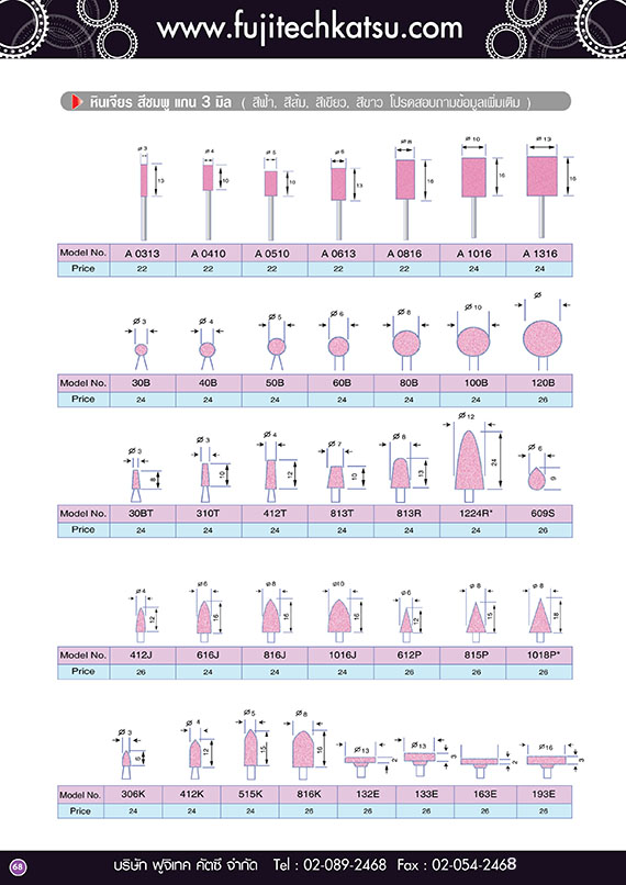 หมวดหมู่สินค้า เครื่องมือลม เครื่องเจียรแกนจับแกน 3 มิล ตะไบลม เลื่อยลม เครื่อขัดกระดาษทรายลม แบบ กลม 2-6 นิ้ว เครื่องเจียรลม ขนาด 2 นิ้ว -7 นิ้ว สว่านลม ไขควงลม บล็อคลม รีเวทลม กรรไกรลม เครื่องแม็กซ์ลม เครื่องยิงตะปูลม กาพ่นสี เครื่องพ่นสี , เครื่องกวนสี เครื่องเจียรลมจับแกน 6 มิล เครื่องเจียรลม แกน 3 มิลแบบชุด เครื่องเจียรลมจับแกน 6 มิลแบบเป็นชุด เครื่องเจียรลมแกนจับ 6 มิล แบบองศา เครื่องขัดกระดาษทราบแบบเหลี่ยม เครื่องขัดสายพาน เครื่องเจียรลมขนาดเล็กแบบองศา สกัดลม อุปกรณ์เครื่องมือลม ปืนลม สายลมม้วนกลับ ข้อต่อลม ลูกบล็อคลม ดอกไขควงลม น้ำมันเครื่องมือลม สายลม SPRING BALANCER ดอกสกัดลม AIR FILTER ถังดูดฝุ่น SPRAY GUN เครื่องมือเพชรสำหรับงานอุตสาหกรรม ตะไบเพชร แบบใช้มือจับ หัวเจียรเพชร จับแกน 3 มิล และแกน 6 มิล ผงเพชร/กระดาษทรายเพชร/แปลงขัดเพชร เพชรแต่งหน้าหิน/ไขควงเพขร หินเจียรเพชรเรซิ่น และ เพชรชุบ มีดกลึงเพชร ตะไบเพชร / แบบใข้เครื่องขัด หินเพชรชุบ MOUNTED POINT อุปกรณ์สำหรับ งานขัด,งานเจียร ดอกต๊าป ดอกเจาะนำศูนย์ เคาน์เตอร์บอร์ เคาน์เตอร์ซิงค์ ใบเลื่อย คัตเตอร์กัดร่อง หัวเจียรคาร์ไบด์ แกน 3มิล และ 6 มิล เครื่องมือไฟฟ้า , เครื่องขัดอุนตร้าโซนิค เครื่องเจียรเครื่องขัด ไฟฟ้าขนาดเล็ก เครื่องขัด อุนตร้าโซนิค ไขควงไฟฟ้า สว่านไฟ้าฟ้า เครื่องขัดไฟฟ้า เครื่องเจียรไฟฟ้า 4-7 นิ้ว เลื่อยไฟฟ้า เครื่องมือกัด,ตัด,เจาะ,กลึง,ปาด เอ็นมิล หัวเจียร์คาร์ไบด์ , ดอกเจียรคาร์ไบด์ ดอกสว่าน ดอกเอ็นมิล ดอกเจาะ , เดอความรู , ขยายปากรู ดอกต๊าป ใบเลื่อย รีมเมอร์ เครื่องมือช่าง กระดาษทราย ลูกขัดสักหลาด ลูกยางขัดเงา ชนิดแกน 3 มิล และ 6 มิล สก๊อตไบร์ทขัดเงา ขนแกะขัดเงา , ฟองน้ำขัดเงา แป้นเพด แปลงขัดชนิดต่าง ๆ แบบมีแกน 3 และ 6 มิล แปลงลวดอุตสาหกรรม หินขัดน้ำมัน-หินขัดแม่พิมพ์-หินเจียรราบ ตะไบช่าง ฟองน้ำขัดเงา Catalog แคตตาล็อค